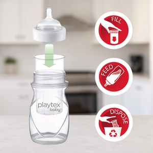 The Playtex Drop-Ins® Liners are soft, disposable liners that fit inside the Nurser bottle.